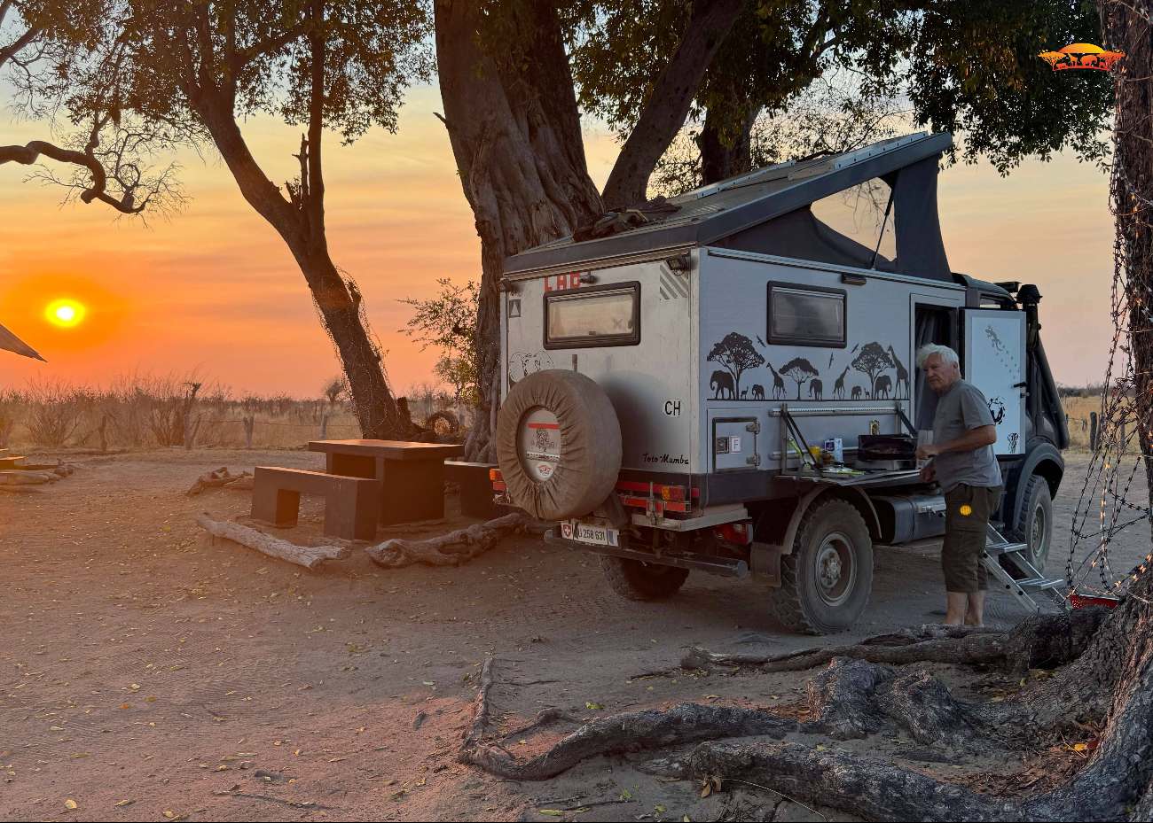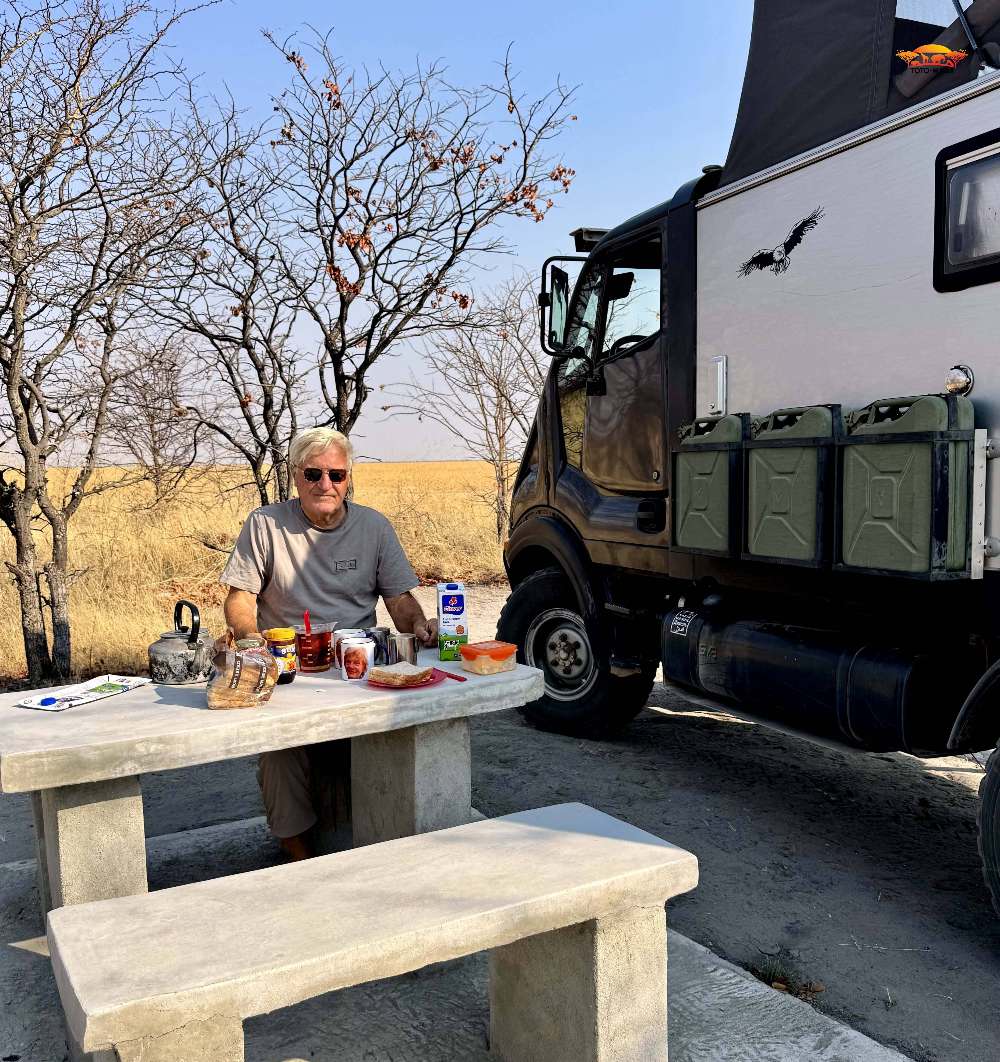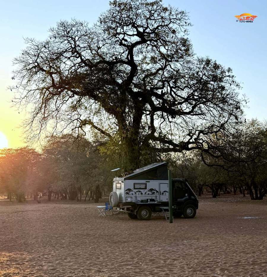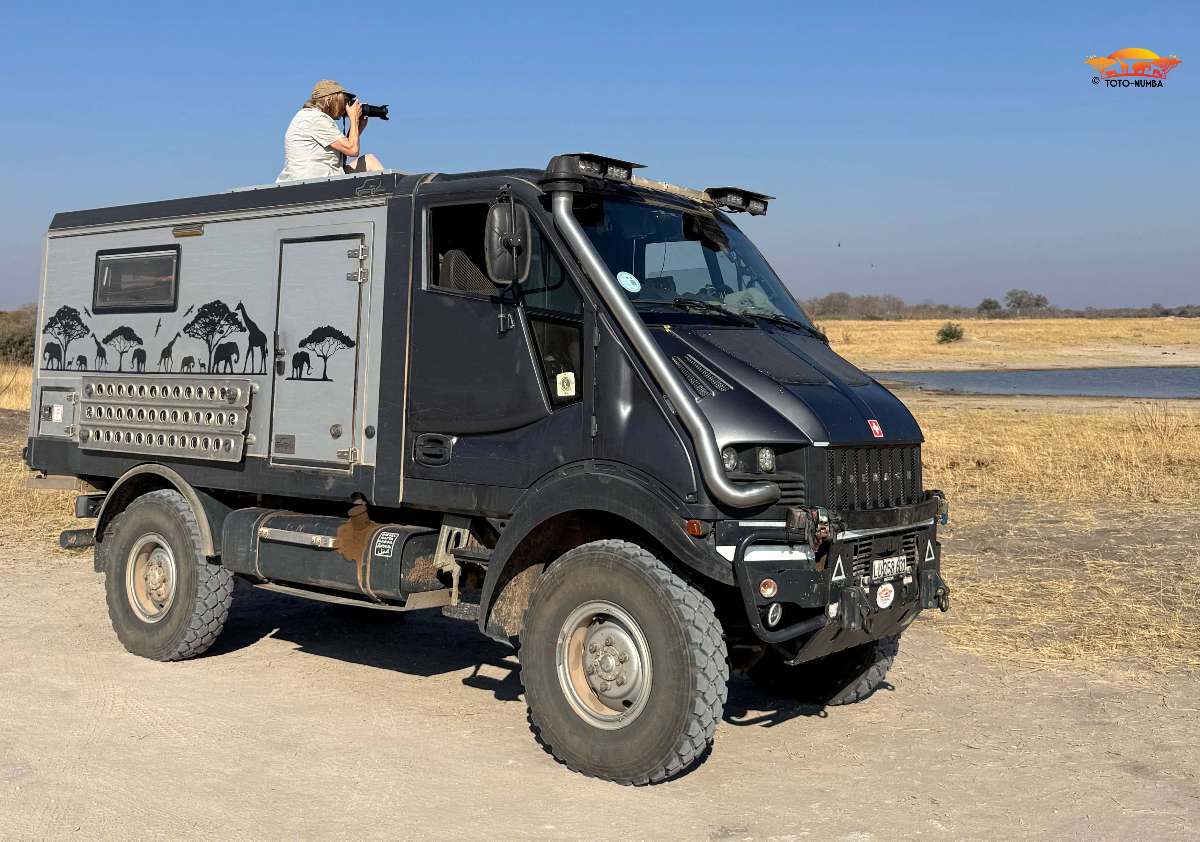 Nach dieser wundervollen Zeit führte uns die Weiterreise nach Bulawayo, wo wir Freunde besuchten und ein paar tolle Tage mit ihnen verbrachten. Anschliessend passierten wir die Grenze in Plumtree nach Botswana, wo die erste Übernachtung in Francistown war. In dieser Iveco-Werkstatt, veranlassten wir den Ölwechsel und die Wechsel des Öl- Luft- und Dieselfilters. Daraufhin folgten zwei Tage im Nata Bird Sanctuary, im einzigartigen Naturschutzgebiet, das sich am nordöstlichen Rand der Sowa Pan erstreckt. Hier entdeckten wir sogar einem Löffelhund und konnten ihm eine ganze Weile zusehen.