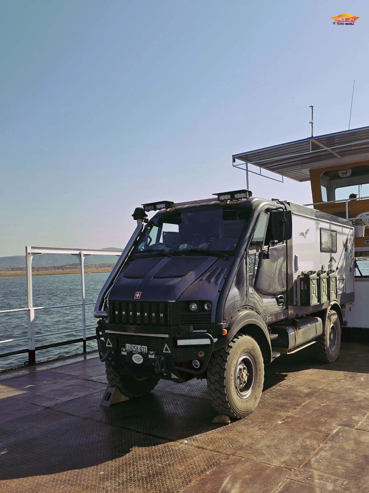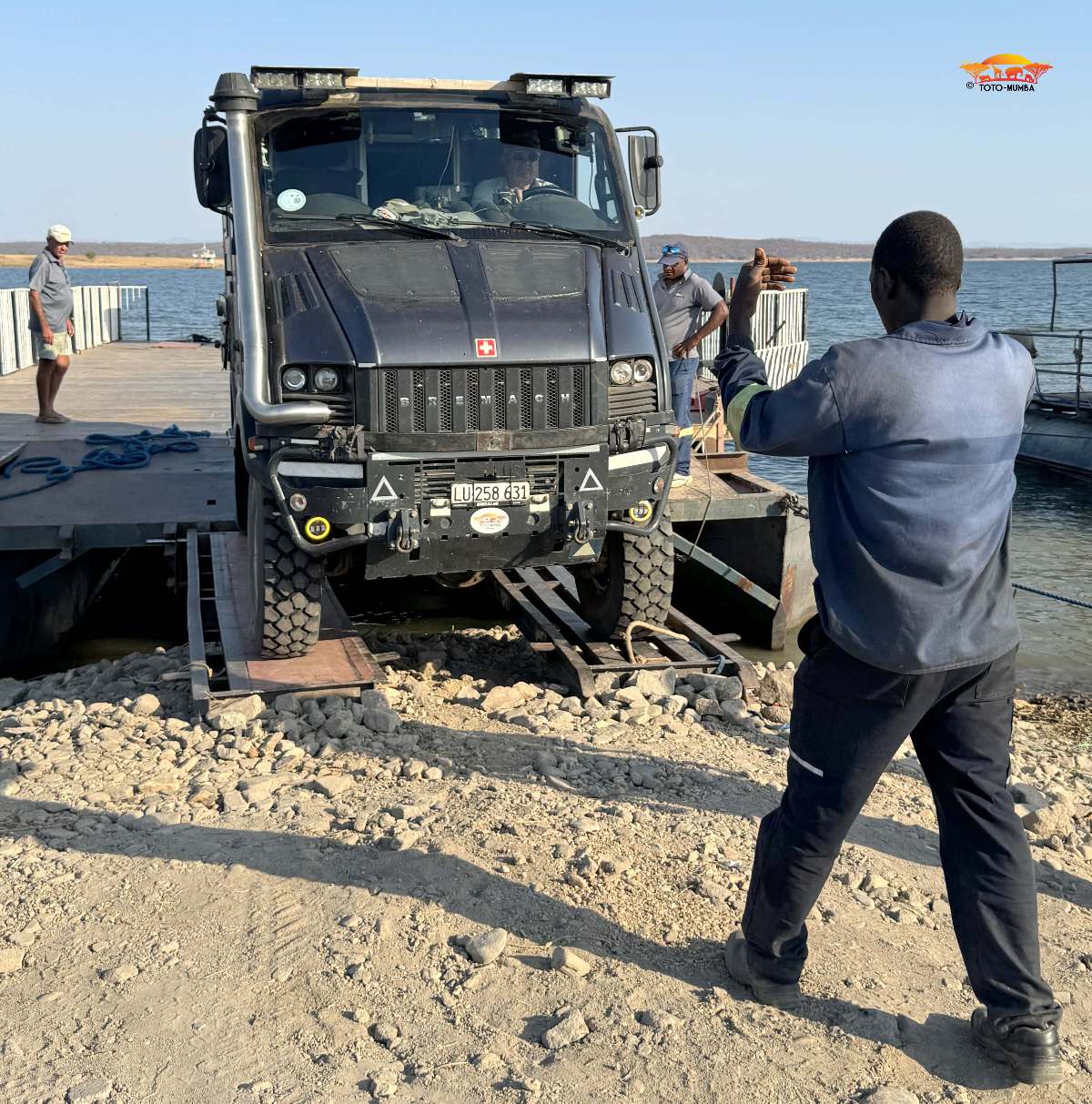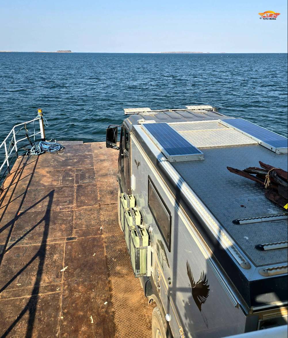 Schon am nächsten Tag reisten wir über die Grenze nach Kariba in Zimbabwe. Hier buchten wir bei Davey, dem Fährbetreiber, die Matusadona-Ferry (äusserst empfehlenswert). Nach entspannten drei Tagen setzten wir mit dieser in den Matusadona NP über. (Dauer 3 Std.) Nach Tieren ausschauend kurvten wir gemütlich dem Tashinga -Camp entgegen. Kaum dort angekommen, überhitzte der Motor erneut und wir hatten Kühlwasserverlust. Auch war der Schlauch wiederholt gerissen und der Ventilator hatte von neuem alle seine Blätter verloren!!!